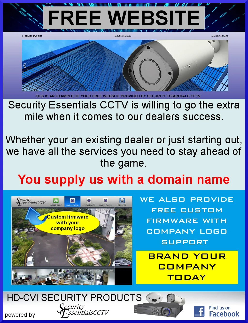Security Essentials CCTV will now design & build your company a 3 page informative website free of charge for being a loyal dealer.